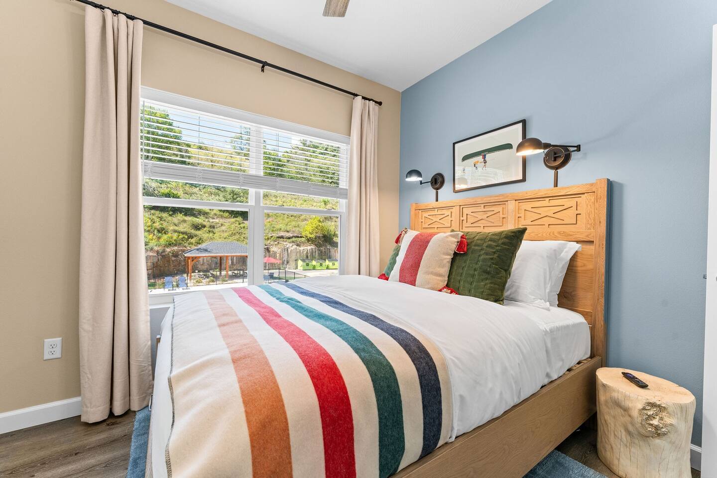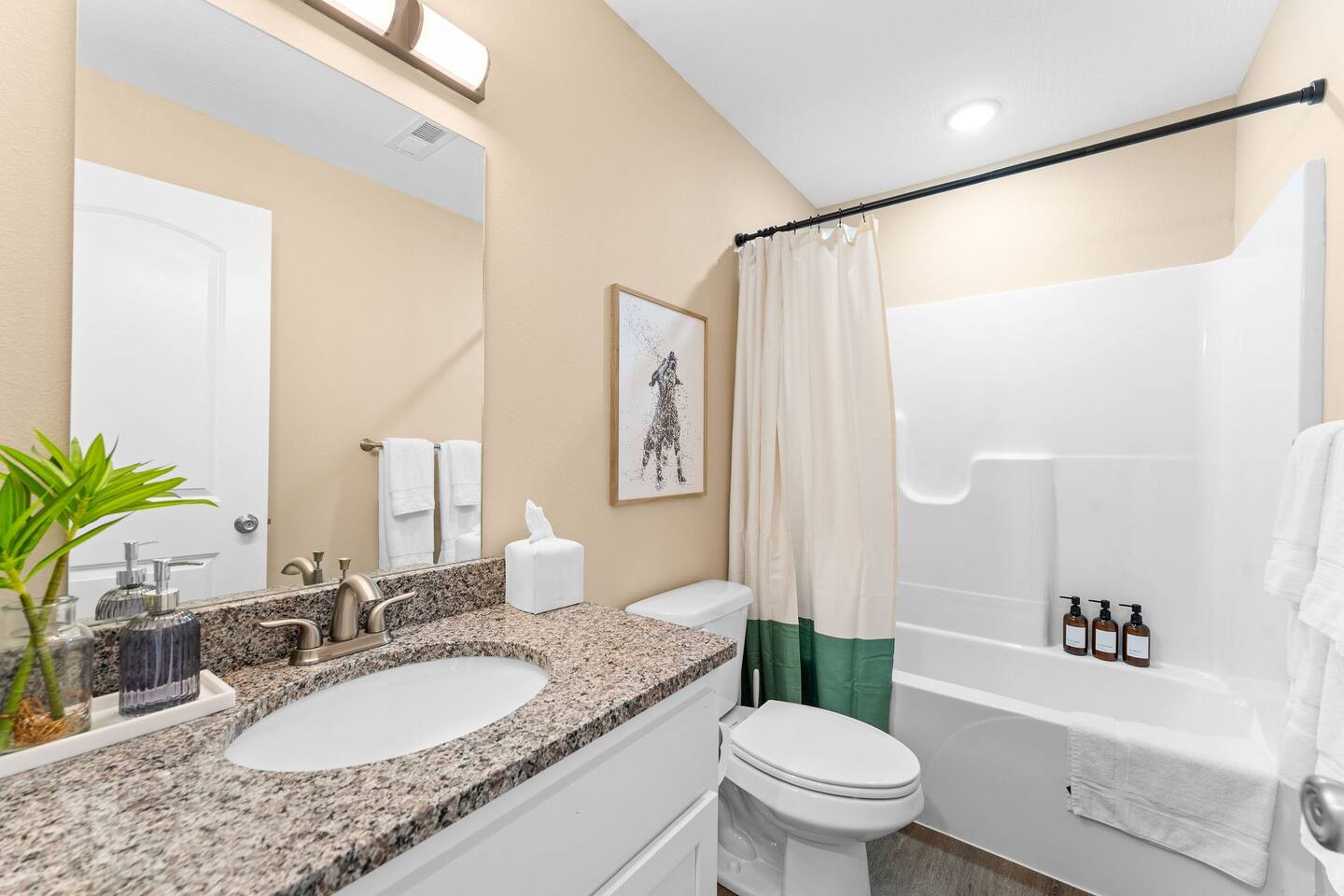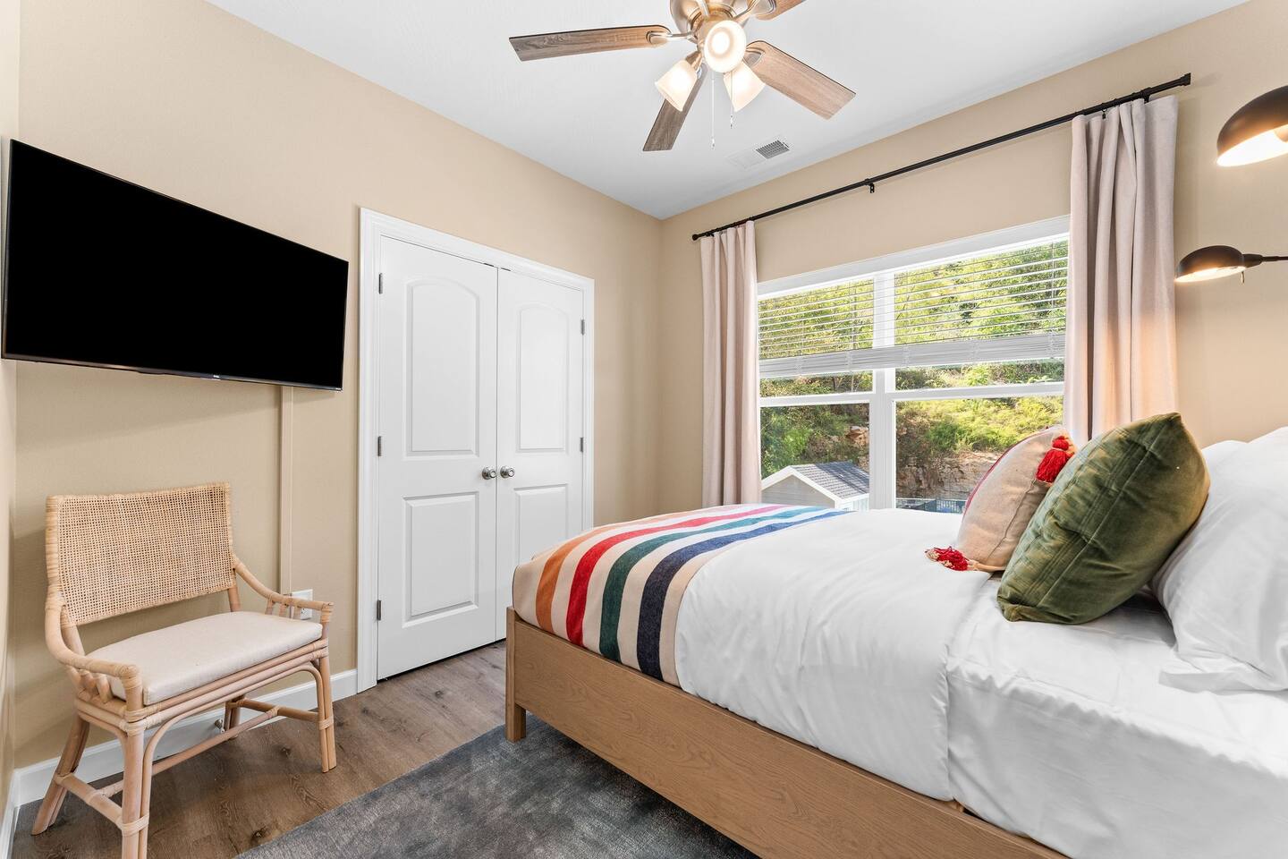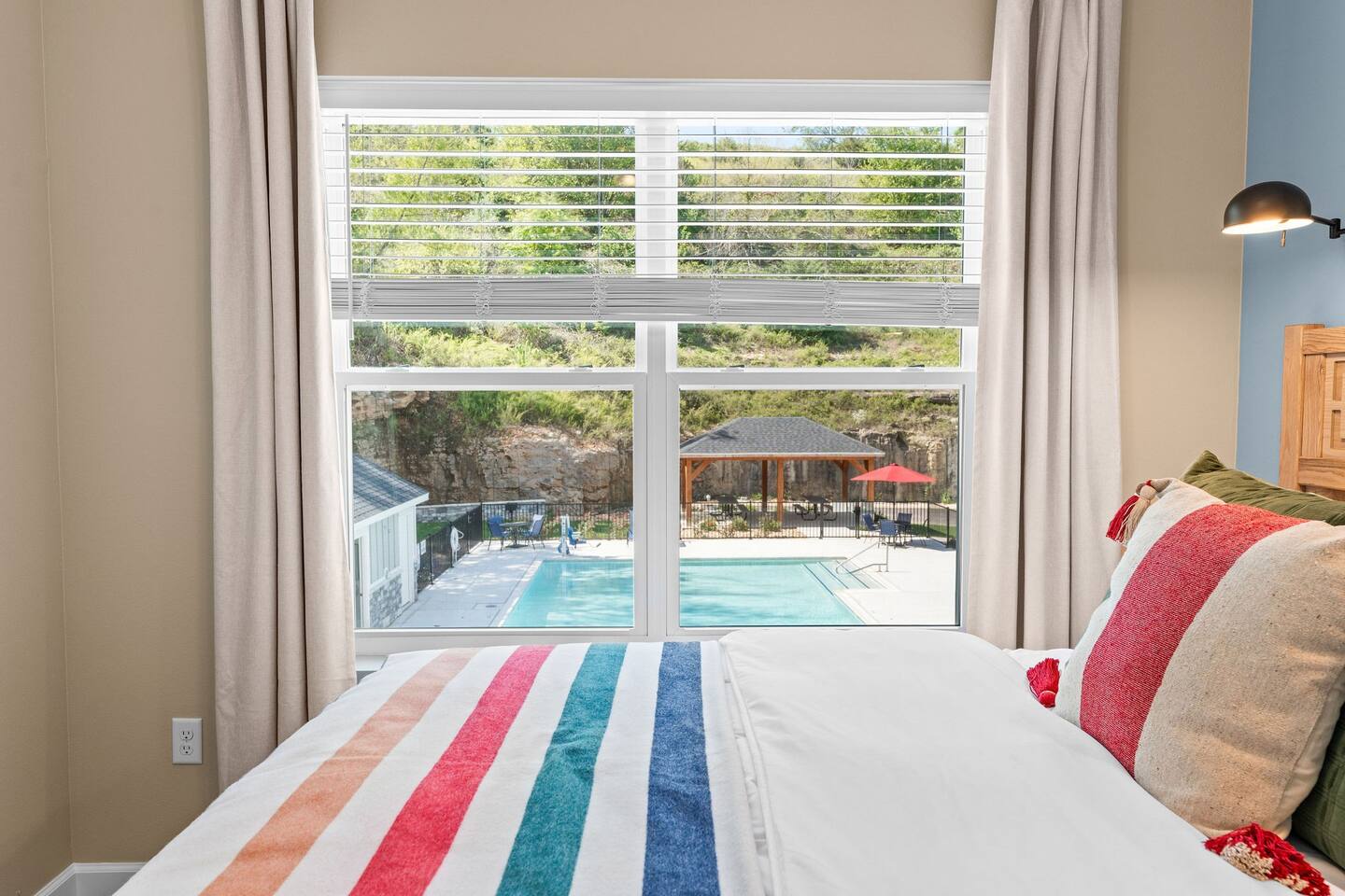 Welcome to your Branson getaway—a comfortable four-bedroom, three-bath retreat designed for families, friends, and anyone who want both convenience and relaxation. Just minutes from Branson’s live shows, lakes, and attractions, this home makes it easy to enjoy the best of the Ozarks while giving you space to truly unwind. Inside, you’ll find plenty of room for everyone. Four bedrooms and three full baths mean no waiting in line to get ready. A couple of bedrooms overlook the pool, giving kids the perfect view to scope out the action and plan the day. The open living area has a fireplace for cooler nights, and the kitchen is fully equipped so you can cook a favorite meal, pack snacks for a day at Silver Dollar City, or gather everyone around the table for breakfast before heading out. Step outside to the screened-in porch for morning coffee or an evening drink, surrounded by the striking beauty of the Ozarks. The natural rock wall just beyond the porch has a “red rocks” feel, giving the space a unique backdrop that’s both private and memorable. The community pool is just steps from the front door, making it easy to cool off on hot days or let the kids burn some energy. With its convenient location right next door, you can enjoy a quick swim, relax poolside, or head back to the house in minutes when it’s time for a meal or a break. It’s a favorite spot for families and adds to the vacation feel without ever leaving the neighborhood. When it’s time for fun at home, head up to the second living area with it's relaxed "19th hole" vibe. With a bar, lounge seating, comfy couch, board games, and two TVs, it’s a great spot to catch the big game, watch a movie together, or simply unwind like it's the clubhouse after a round. For longer stays, the in-home laundry makes life easier. No need to overpack—toss in swimsuits, hiking clothes, or kids’ gear and keep things fresh. The home is pet-friendly because we know firsthand how hard it can be to find a place that welcomes your four-legged family members. Bring them along without worry—they’ll feel right at home here, whether curled up beside the fireplace or out on the screened-in porch enjoying fresh air with you. This property balances comfort and convenience. Some guests come for the shows and restaurants, others for the golf courses and fishing, and many for time together as a group. Whatever brings you here, this home is set up to help you enjoy it. Families with kids, couples traveling together, or groups of friends can spread out without feeling crowded. Branson has a way of offering something for everyone—live music, outdoor adventure, shopping, and plenty of family fun. After a busy day, it’s good to return to a home where you can choose what kind of evening you want. Maybe enjoy drinks on the porch, maybe watch a movie by the fire, or maybe head straight for bed in a quiet, private room. This isn’t just a place to sleep—it’s a place to connect, recharge, and enjoy the people (and pets) you’ve brought with you. Book your stay and make this your home base in Branson: 📍 Perfectly Located ✅ Under 10 min → Silver Dollar City, White Water & Branson Strip ✅ 10 min → State Park Marina & Showboat Branson Belle ✅ 20 min → Branson Landing, Big Cedar Lodge & Top of the Rock