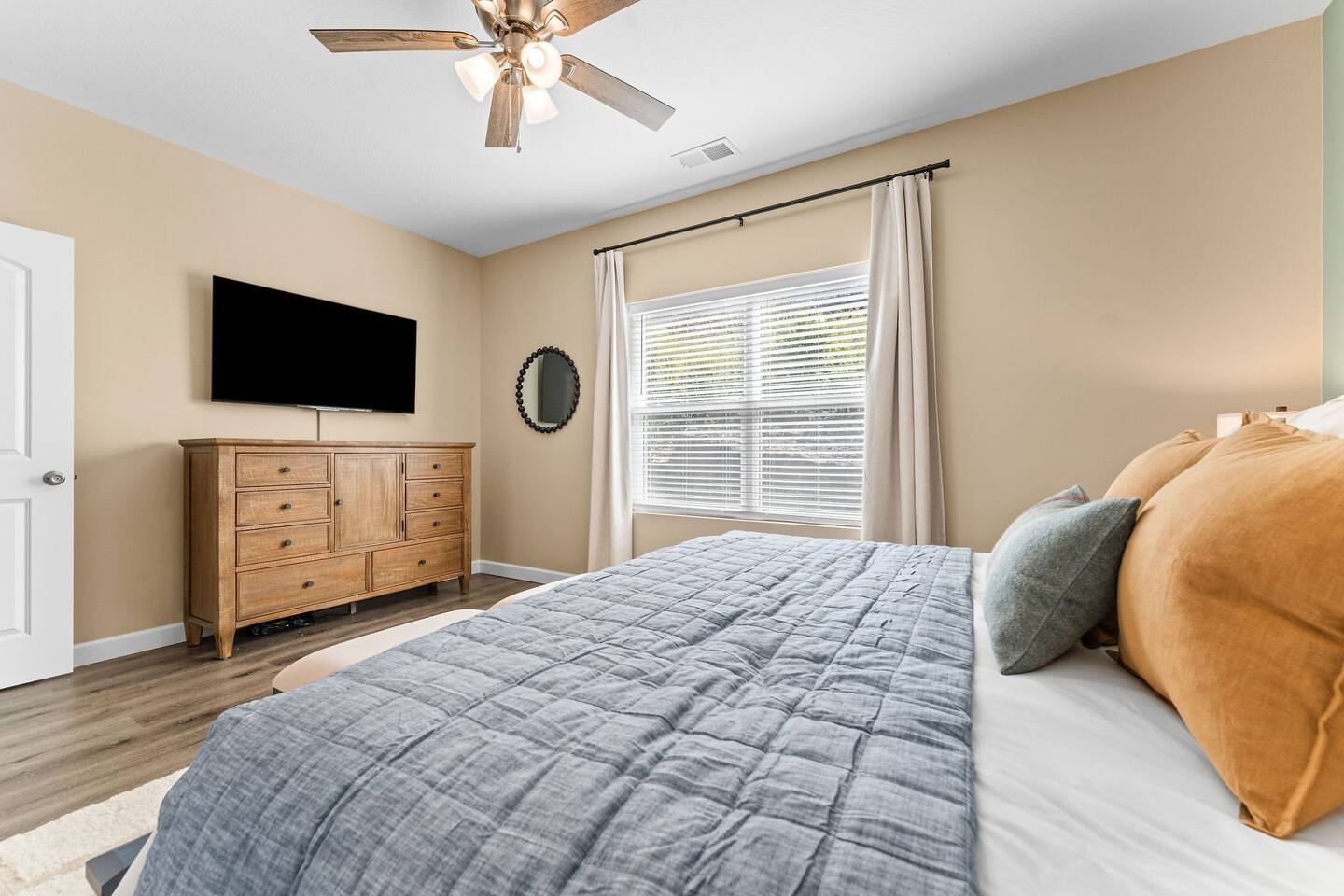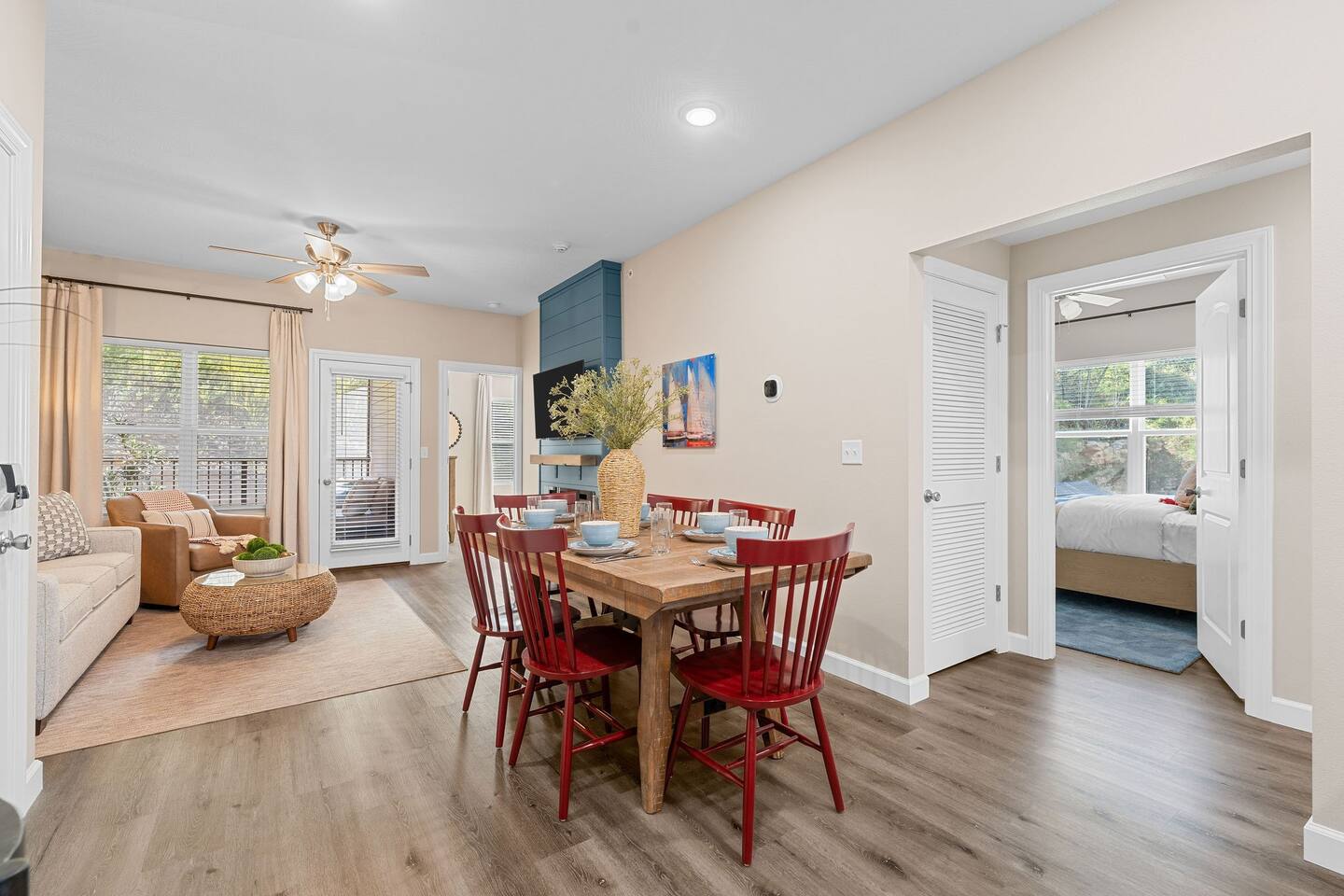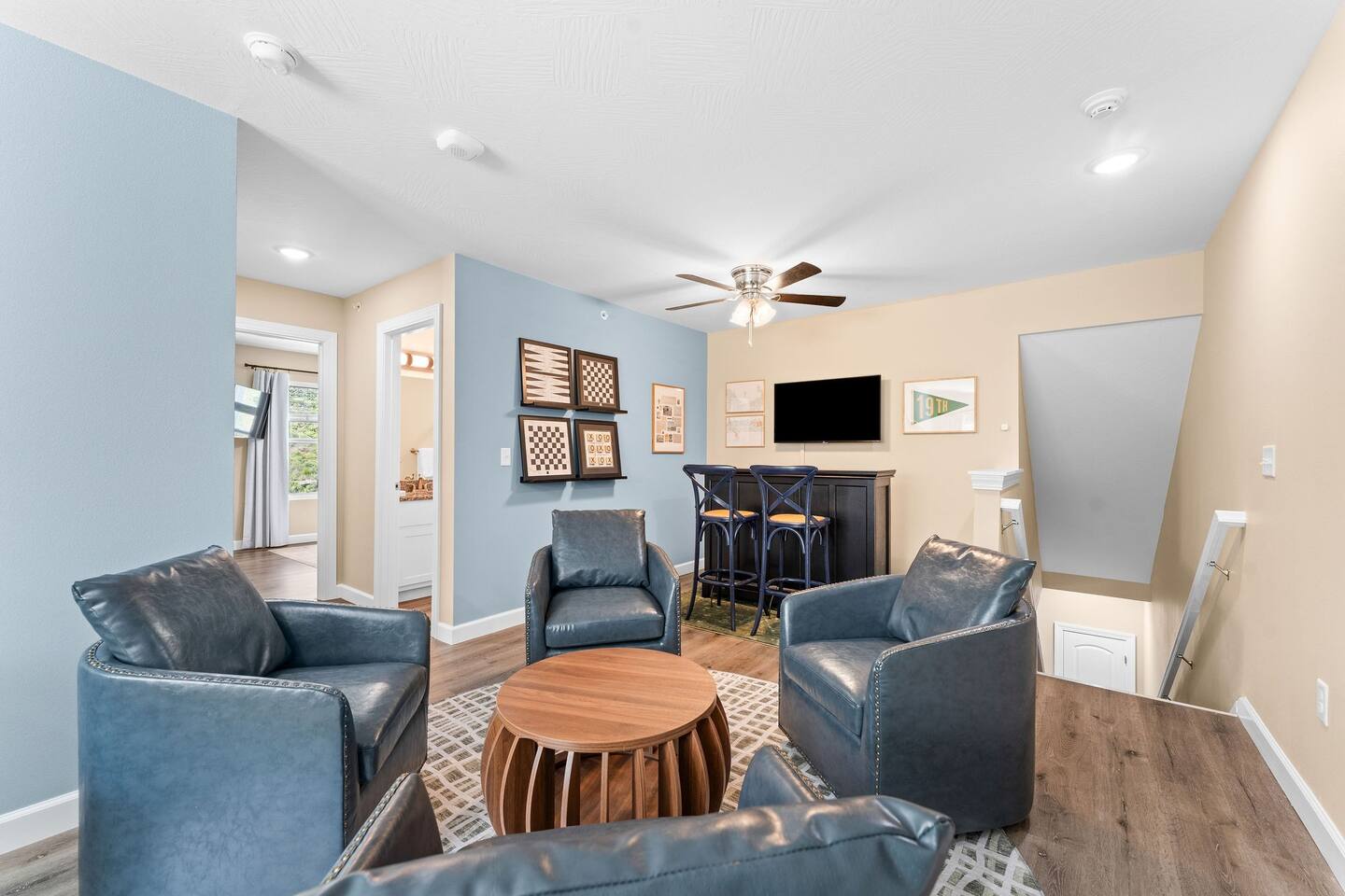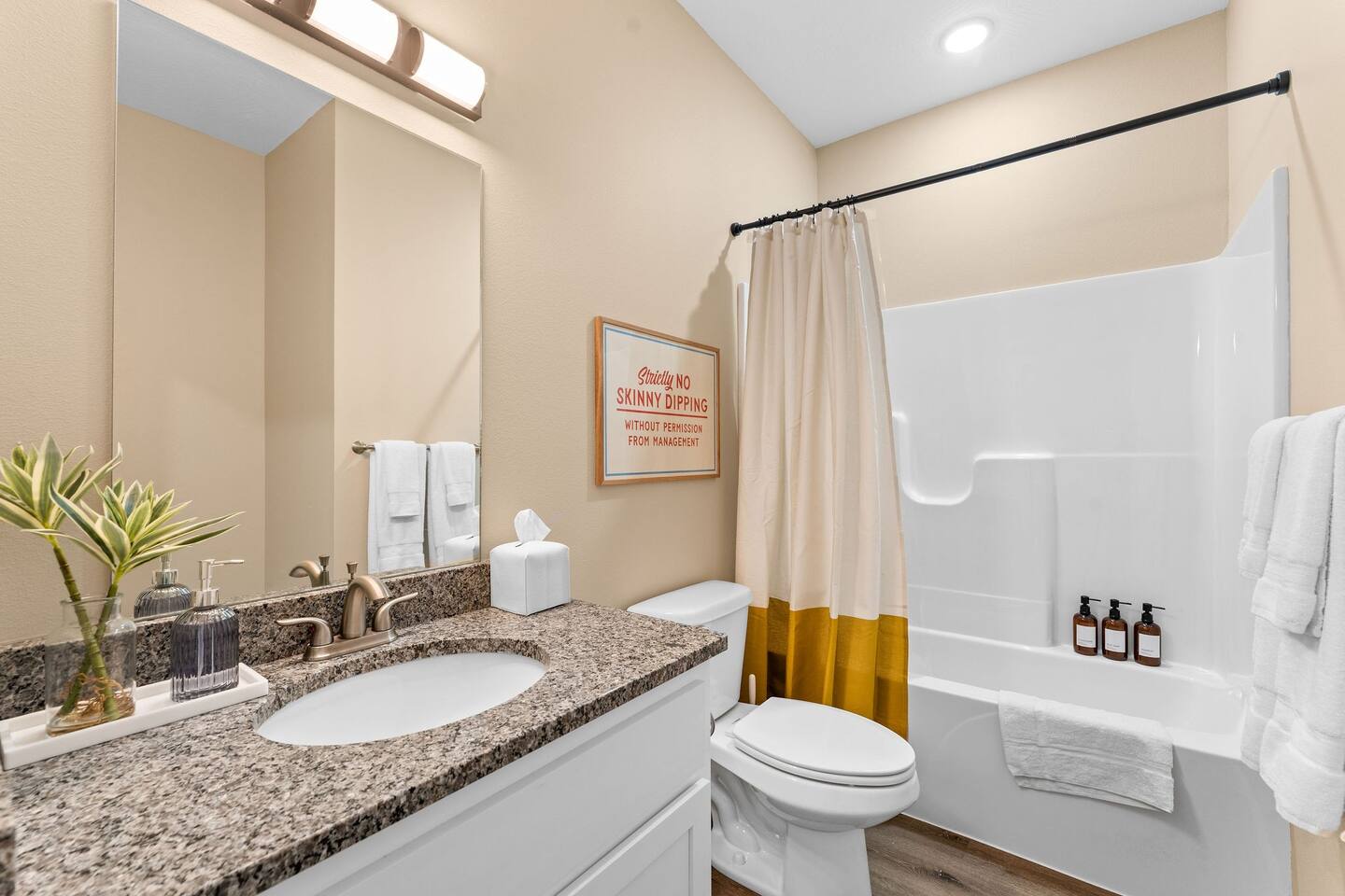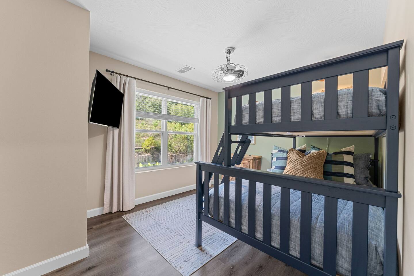 Welcome to your Branson getaway—a comfortable four-bedroom, three-bath retreat designed for families, friends, and anyone who want both convenience and relaxation. Just minutes from Branson’s live shows, lakes, and attractions, this home makes it easy to enjoy the best of the Ozarks while giving you space to truly unwind. Inside, you’ll find plenty of room for everyone. Four bedrooms and three full baths mean no waiting in line to get ready. A couple of bedrooms overlook the pool, giving kids the perfect view to scope out the action and plan the day. The open living area has a fireplace for cooler nights, and the kitchen is fully equipped so you can cook a favorite meal, pack snacks for a day at Silver Dollar City, or gather everyone around the table for breakfast before heading out. Step outside to the screened-in porch for morning coffee or an evening drink, surrounded by the striking beauty of the Ozarks. The natural rock wall just beyond the porch has a “red rocks” feel, giving the space a unique backdrop that’s both private and memorable. The community pool is just steps from the front door, making it easy to cool off on hot days or let the kids burn some energy. With its convenient location right next door, you can enjoy a quick swim, relax poolside, or head back to the house in minutes when it’s time for a meal or a break. It’s a favorite spot for families and adds to the vacation feel without ever leaving the neighborhood. When it’s time for fun at home, head up to the second living area with it's relaxed "19th hole" vibe. With a bar, lounge seating, comfy couch, board games, and two TVs, it’s a great spot to catch the big game, watch a movie together, or simply unwind like it's the clubhouse after a round. For longer stays, the in-home laundry makes life easier. No need to overpack—toss in swimsuits, hiking clothes, or kids’ gear and keep things fresh. The home is pet-friendly because we know firsthand how hard it can be to find a place that welcomes your four-legged family members. Bring them along without worry—they’ll feel right at home here, whether curled up beside the fireplace or out on the screened-in porch enjoying fresh air with you. This property balances comfort and convenience. Some guests come for the shows and restaurants, others for the golf courses and fishing, and many for time together as a group. Whatever brings you here, this home is set up to help you enjoy it. Families with kids, couples traveling together, or groups of friends can spread out without feeling crowded. Branson has a way of offering something for everyone—live music, outdoor adventure, shopping, and plenty of family fun. After a busy day, it’s good to return to a home where you can choose what kind of evening you want. Maybe enjoy drinks on the porch, maybe watch a movie by the fire, or maybe head straight for bed in a quiet, private room. This isn’t just a place to sleep—it’s a place to connect, recharge, and enjoy the people (and pets) you’ve brought with you. Book your stay and make this your home base in Branson: 📍 Perfectly Located ✅ Under 10 min → Silver Dollar City, White Water & Branson Strip ✅ 10 min → State Park Marina & Showboat Branson Belle ✅ 20 min → Branson Landing, Big Cedar Lodge & Top of the Rock