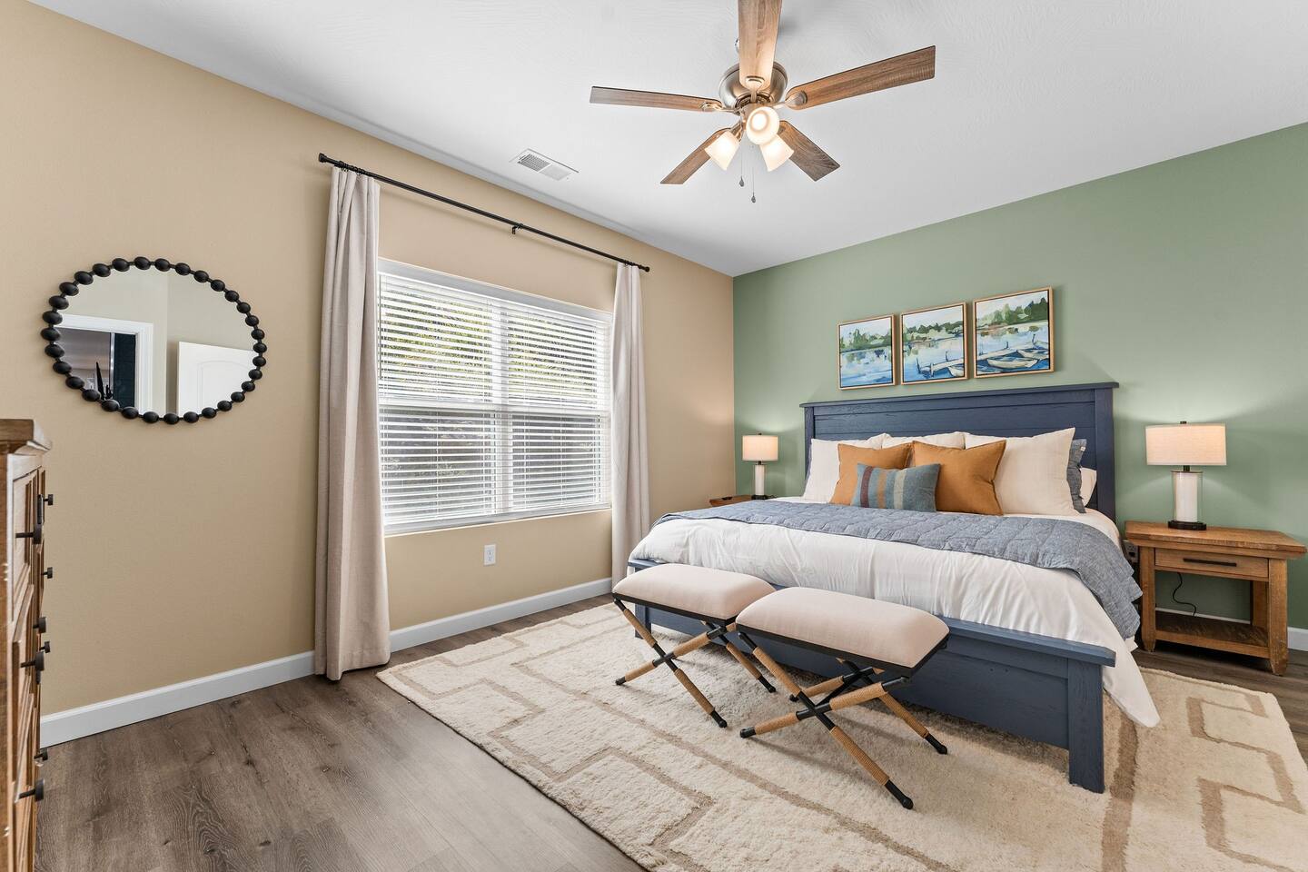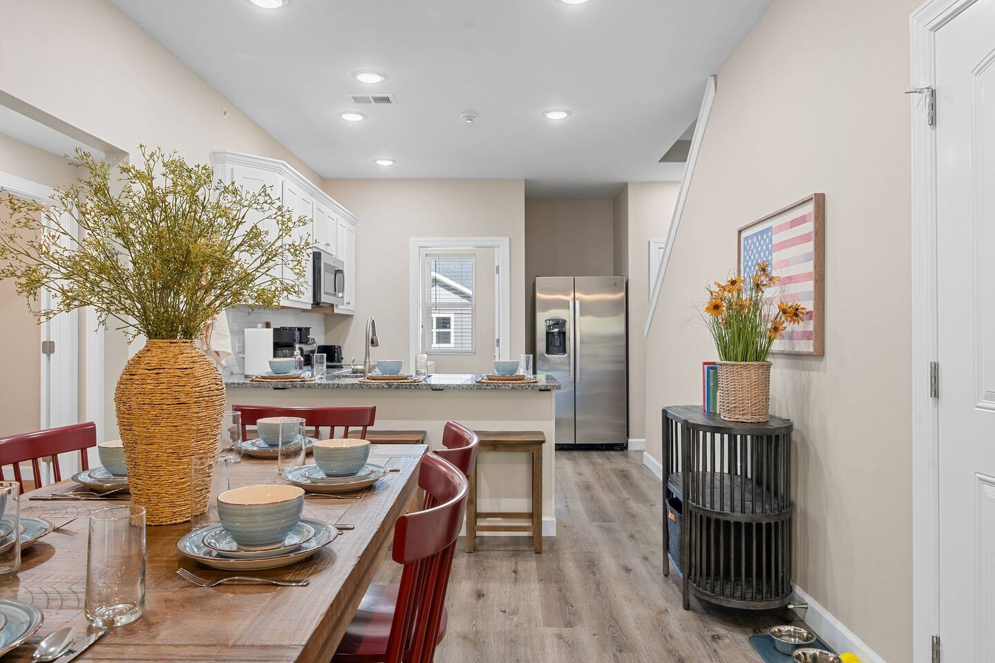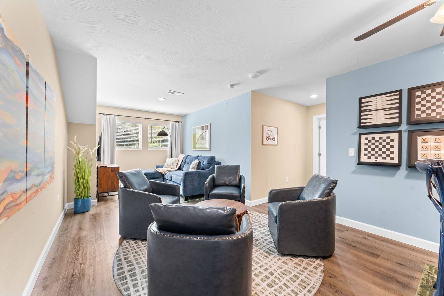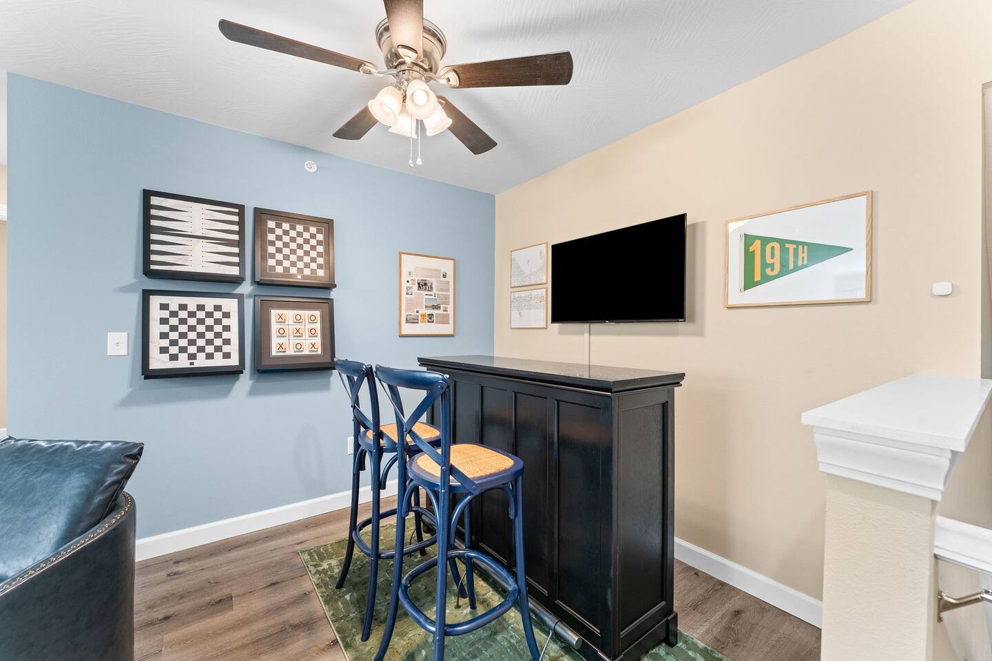 Welcome to your Branson getaway—a comfortable four-bedroom, three-bath retreat designed for families, friends, and anyone who want both convenience and relaxation. Just minutes from Branson’s live shows, lakes, and attractions, this home makes it easy to enjoy the best of the Ozarks while giving you space to truly unwind. Inside, you’ll find plenty of room for everyone. Four bedrooms and three full baths mean no waiting in line to get ready. A couple of bedrooms overlook the pool, giving kids the perfect view to scope out the action and plan the day. The open living area has a fireplace for cooler nights, and the kitchen is fully equipped so you can cook a favorite meal, pack snacks for a day at Silver Dollar City, or gather everyone around the table for breakfast before heading out. Step outside to the screened-in porch for morning coffee or an evening drink, surrounded by the striking beauty of the Ozarks. The natural rock wall just beyond the porch has a “red rocks” feel, giving the space a unique backdrop that’s both private and memorable. The community pool is just steps from the front door, making it easy to cool off on hot days or let the kids burn some energy. With its convenient location right next door, you can enjoy a quick swim, relax poolside, or head back to the house in minutes when it’s time for a meal or a break. It’s a favorite spot for families and adds to the vacation feel without ever leaving the neighborhood. When it’s time for fun at home, head up to the second living area with it's relaxed "19th hole" vibe. With a bar, lounge seating, comfy couch, board games, and two TVs, it’s a great spot to catch the big game, watch a movie together, or simply unwind like it's the clubhouse after a round. For longer stays, the in-home laundry makes life easier. No need to overpack—toss in swimsuits, hiking clothes, or kids’ gear and keep things fresh. The home is pet-friendly because we know firsthand how hard it can be to find a place that welcomes your four-legged family members. Bring them along without worry—they’ll feel right at home here, whether curled up beside the fireplace or out on the screened-in porch enjoying fresh air with you. This property balances comfort and convenience. Some guests come for the shows and restaurants, others for the golf courses and fishing, and many for time together as a group. Whatever brings you here, this home is set up to help you enjoy it. Families with kids, couples traveling together, or groups of friends can spread out without feeling crowded. Branson has a way of offering something for everyone—live music, outdoor adventure, shopping, and plenty of family fun. After a busy day, it’s good to return to a home where you can choose what kind of evening you want. Maybe enjoy drinks on the porch, maybe watch a movie by the fire, or maybe head straight for bed in a quiet, private room. This isn’t just a place to sleep—it’s a place to connect, recharge, and enjoy the people (and pets) you’ve brought with you. Book your stay and make this your home base in Branson: 📍 Perfectly Located ✅ Under 10 min → Silver Dollar City, White Water & Branson Strip ✅ 10 min → State Park Marina & Showboat Branson Belle ✅ 20 min → Branson Landing, Big Cedar Lodge & Top of the Rock
